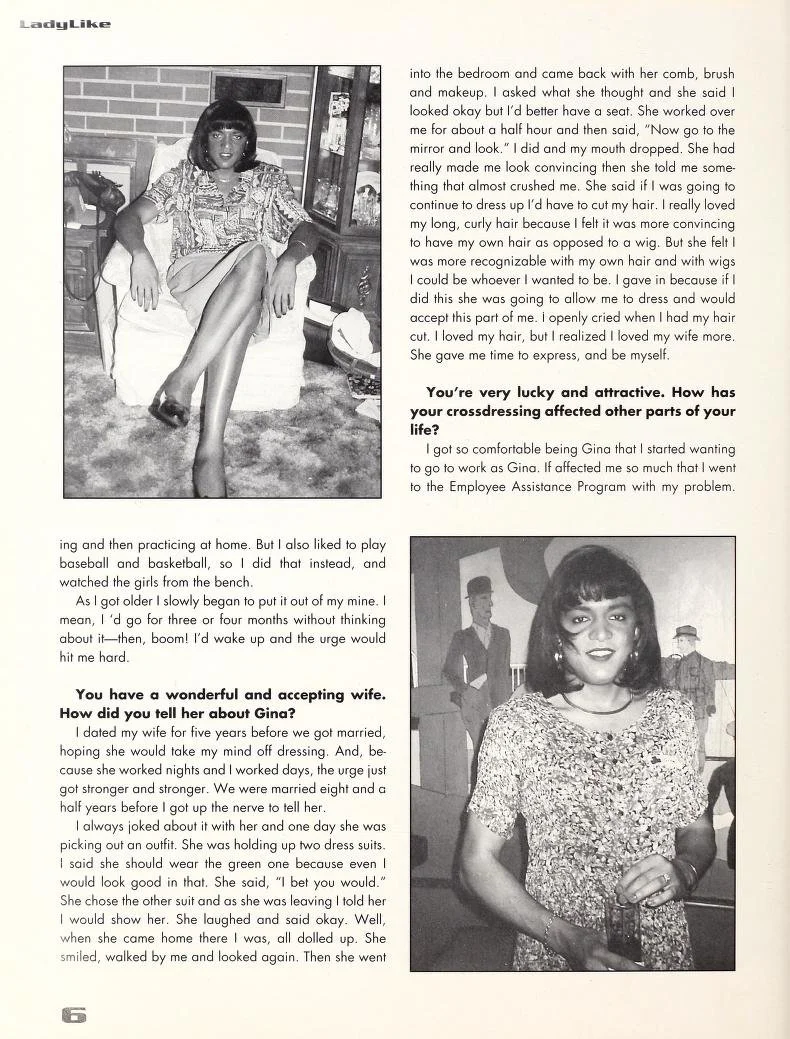 Interview of Gina Allen: LadyLike Magazine, 1995 ARTICLES and INTERVIEWS Nov 3 Written By Kyky Archives Ladylike Magazine, Vol. 26, 1995Source: Digital Trans Archive via Archive.org ladylike magazinetransgendertrans women Kyky Archives