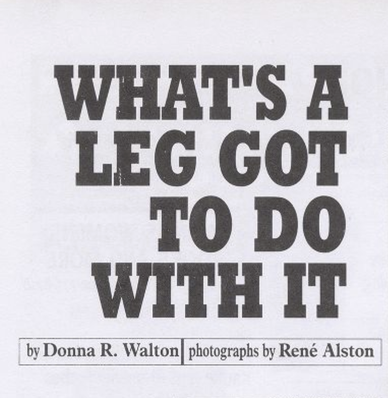 “What’s A Leg Got To Do With It?” by Donna r. Walton, 1995 ARTICLES and INTERVIEWS Aug 31 Written By Zora Lynn Women in the Life Magazine, December 1995Source: DigDC.com lesbianwomen in the life magazine1990's Zora Lynn