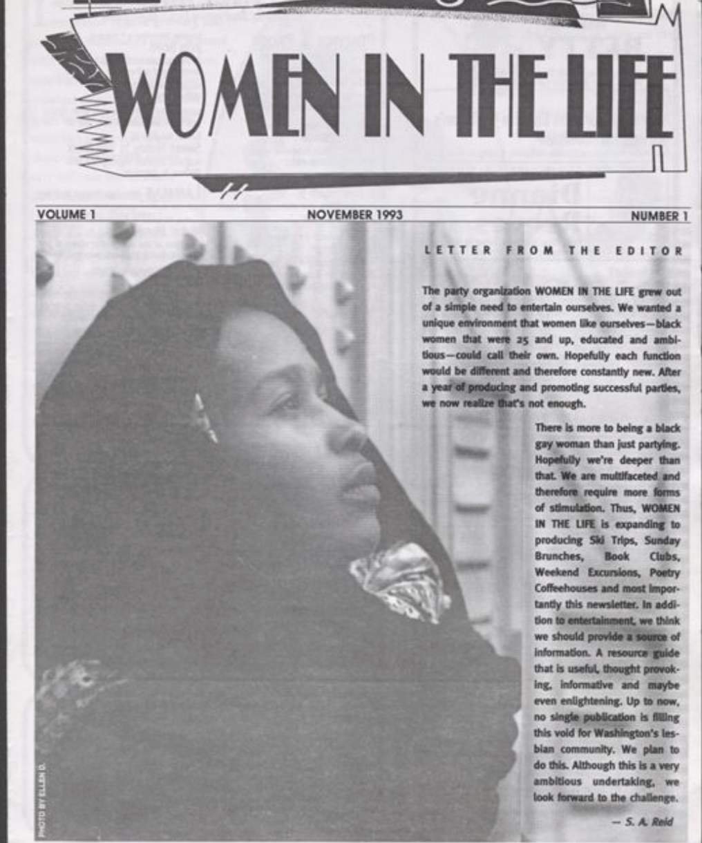 There is more to being a black gay woman than just partying. Hopefully we’re deeper than that. We are multifaceted and therefore require more forms of stimulation. Thus, WOMEN IN THE LIFE is expanding to producing Ski Trips, Sunday Brunches, Book Clubs, Weekend Excursions, Poetry Coffeehouses and most importantly this newsletter. In addition to entertainment, we think we should provide a source of information. A resource guide that is useful, thought provoking, informative and maybe even enlightening. Up to now, no single publication is filling this void for Washington’s lesbian community. We plan to do this. Although this is a very ambitious undertaking, we look forward to the challenge.